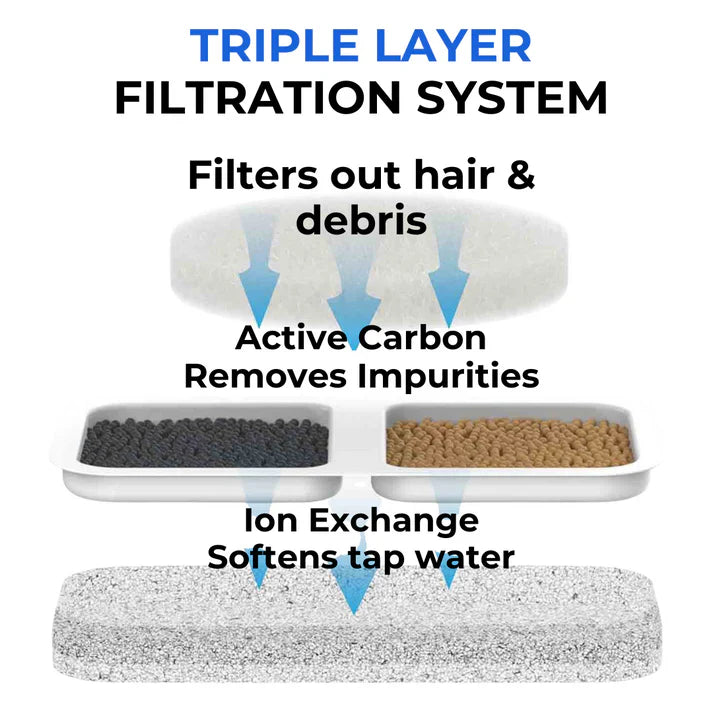If in doubt, we always recommend sizing up. A larger fountain means less frequent refills and ensures your pet always has access to clean, flowing water—even during hot days or long work hours
